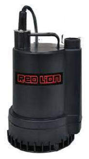 Utility Pump, Submersible, 1/6 hp / 1300 gph max, Thermoplastic Case w/Hose Adapter, Red Lion
