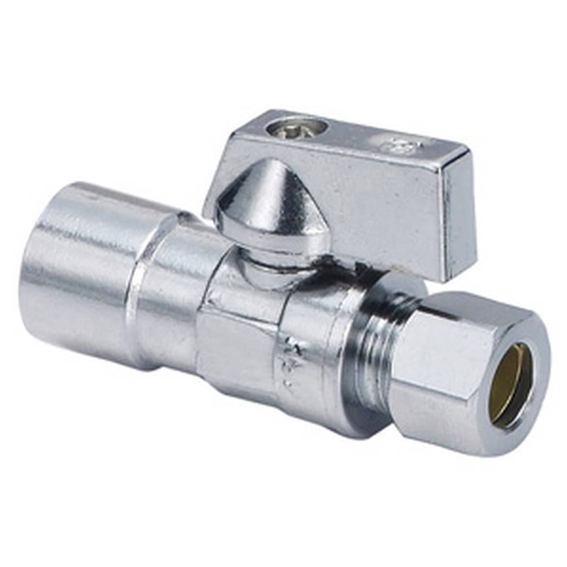 Supply Valve, Straight, 1/4-Turn Ball Valve, 1/2"CS x 3/8 Comp