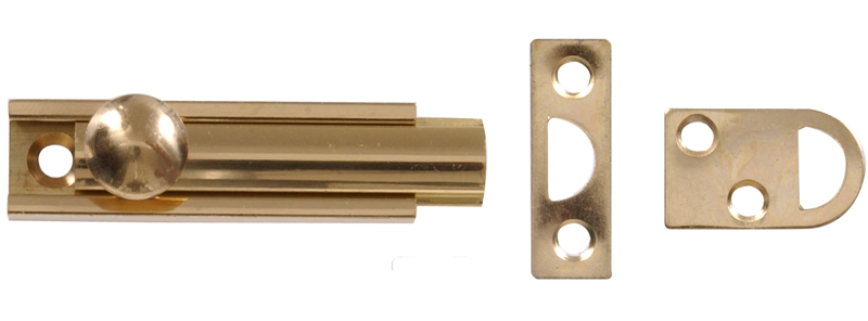 Surface Bolt, 3", BRITE BRASS, 1/pkg