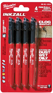 Marker, Jobsite Fine Point, BLACK, 4/pkg, Milwaukee Inkzall
