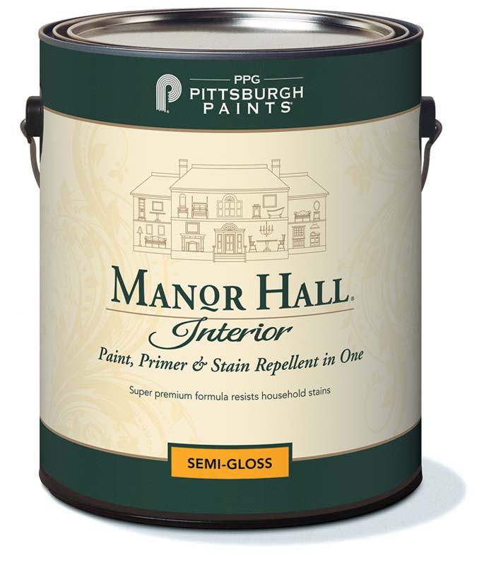 ~Paint, Interior, Acrylic Latex, MANOR HALL, Semi-Gloss, Pastel Base, 3.78 liter