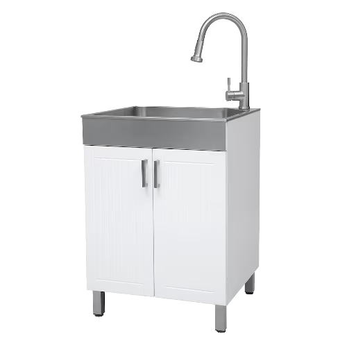 Laundry/Utility Cabinet, with S/Steel Sink, Strainer & Faucet, 24"W x 22"D x 34"H, WHITE, Ready-to-Assemble