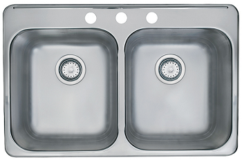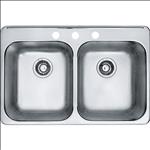 Kitchen Sink, Double Bowl, Drop-In, 3-Hole, Stainless, 31" x 21" x 7", Kindred
