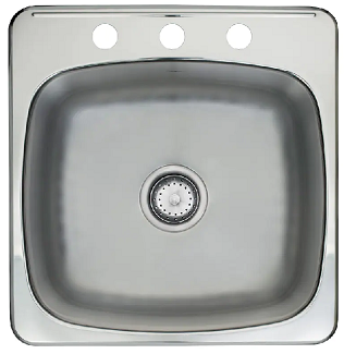 Kitchen Sink, Single Bowl, Drop-In, 3-Hole, Stainless, 20" x 20" x 7", Kindred