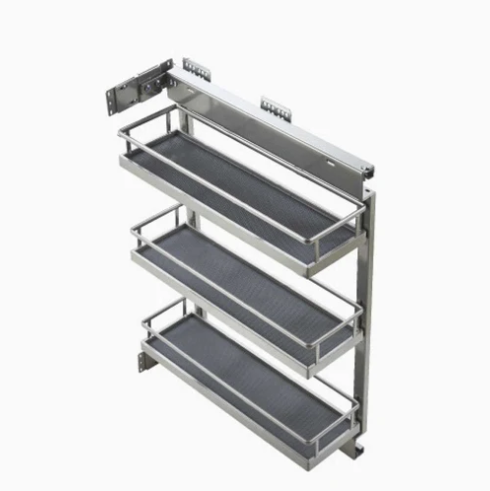 ~Spice Rack, 210008SW, 8-1/4" W x 26-1/4" H, Universal Installation, 3 Solid Bottom Baskets,