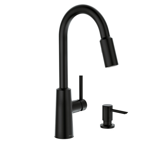 Kitchen Faucet, Single Lever Handle, with Pull-Down Spout, with Soap Dispenser, MATTE BLACK, Moen NORI
