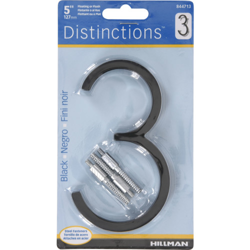 House Number, Floating, 5" BLACK "Distinctions", #3