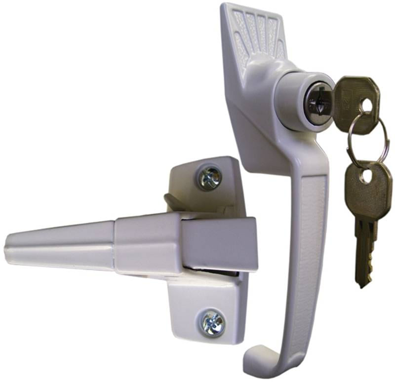 Pushbutton Handle Set, for Screen Door, with Key Lock, Classic WHITE