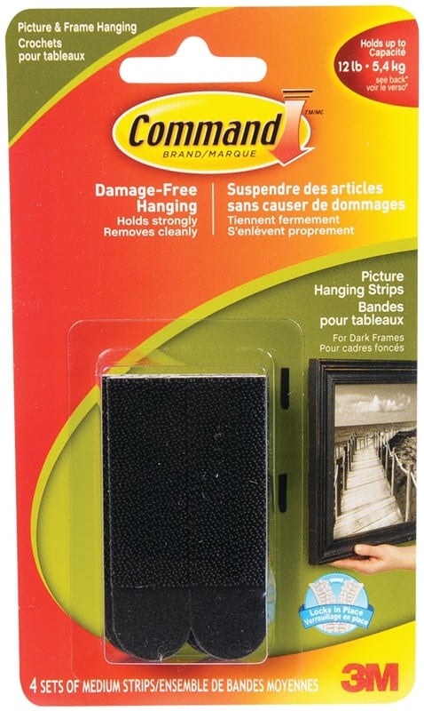Picture Hanging Strips, Self-Adhesive, Hook & Loop, 3M Command, 4/pkg (17201BLK-C) 10 lb capacity