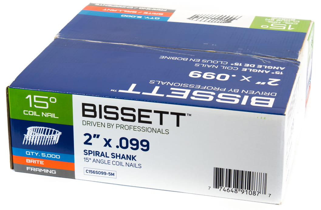 Coil Framing Nails, 2" x .099, 15-Degree, Spiral, Brite, 5000/box