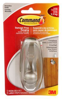 Hook, Self-Adhesive, Large, 3M Command, Timeless BRUSHED NICKEL, 1/pkg (5 lb capacity)
