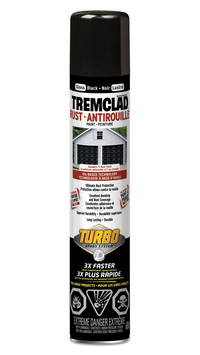 Rust Paint, 3x Turbo Spray, GLOSS BLACK, 680 gram spray, Tremclad