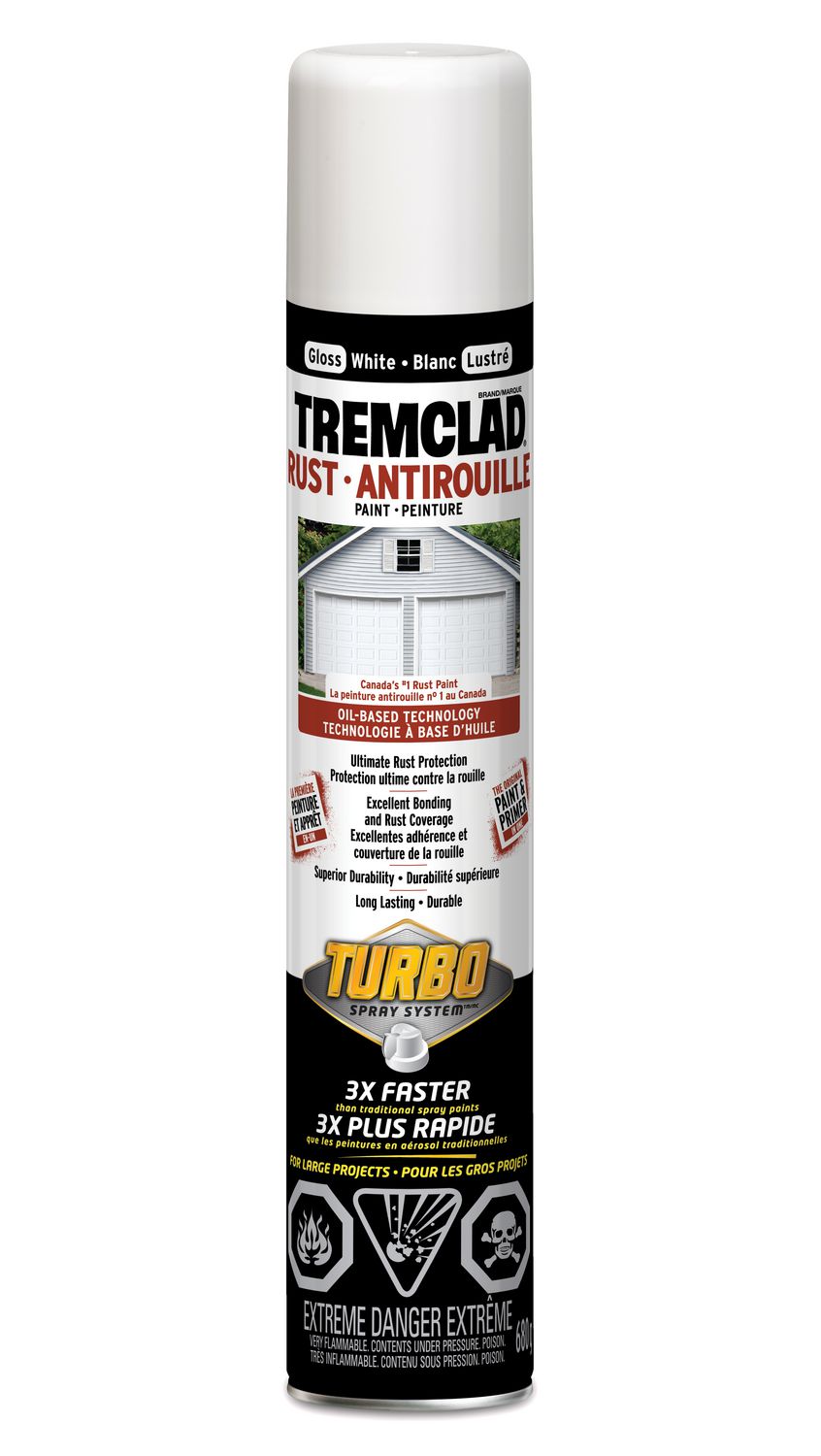 Rust Paint, 3x Turbo Spray, GLOSS WHITE, 680 gram spray, Tremclad