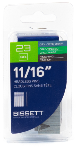 Headless Pin Nail, 11/16" x 23 gauge, Galvanized, 2600/pkg