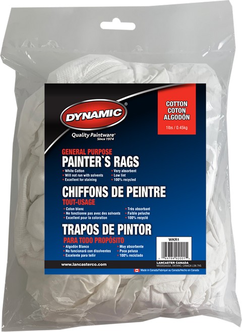 Painters Rags, Dynamic, Recycled White Cotton, 1 lb (0.45 kg)