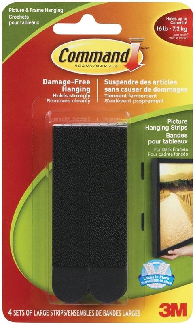 Picture Hanging Strips, Self-Adhesive, Hook & Loop, 3M Command, 4/pkg (17206BLK-C) 15 lb capacity