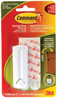 Hook, Self-Adhesive, Picturel, 3M Command, WHITE, 1/pkg (17041C) 5 lb capacity