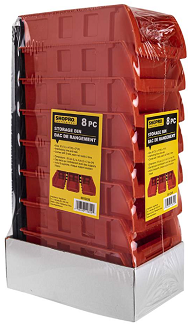 Storage Bins, Small, Stacking, w/Hanging Rails, 4" x 6" x 3"D, 8/pkg