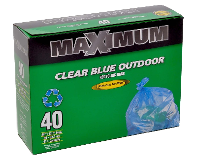 Garbage Bags, Recycle, 26" x 32", Blue, 40/pkg, Maxiumum