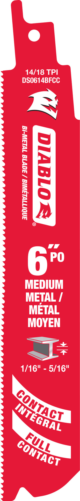 Reciprocating Saw Blade, Bi-Metal, 6"x 14/18 TPI (metal cutting to 1/16" - 5/16" thick) bulk