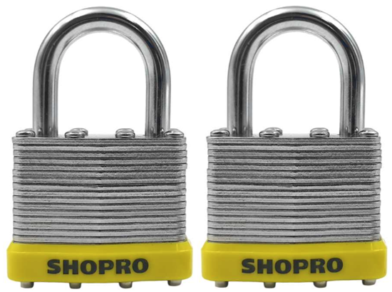 Padlock, Laminated Steel, 1-9/16", Keyed-Alike, 2/pkg, Shopro