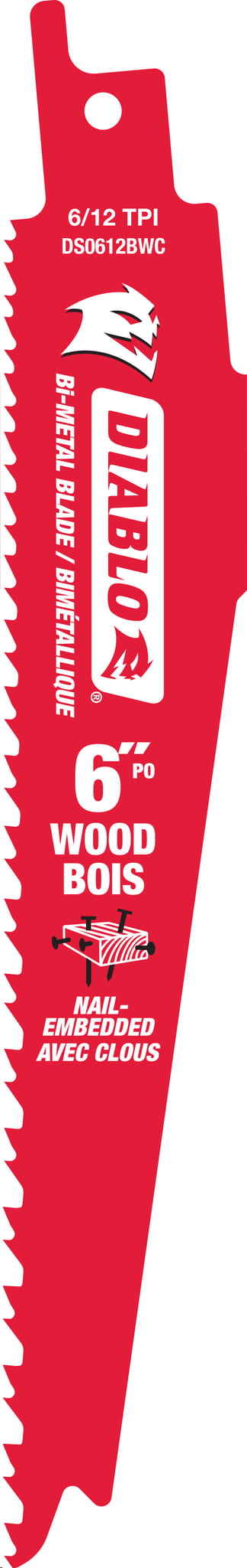 Reciprocating Saw Blade, Bi-Metal, 6"x 6/12 TPI (nail-embedded wood) bulk