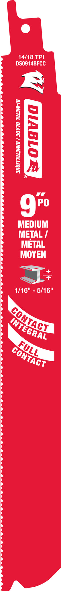 Reciprocating Saw Blade, Bi-Metal, 9"x 14/18 TPI (metal cutting to 1/16" - 5/16" thick) bulk