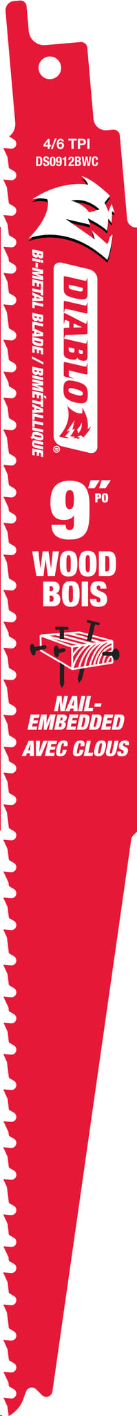 Reciprocating Saw Blade, Bi-Metal, 9"x 4/6 TPI (nail-embedded wood) bulk