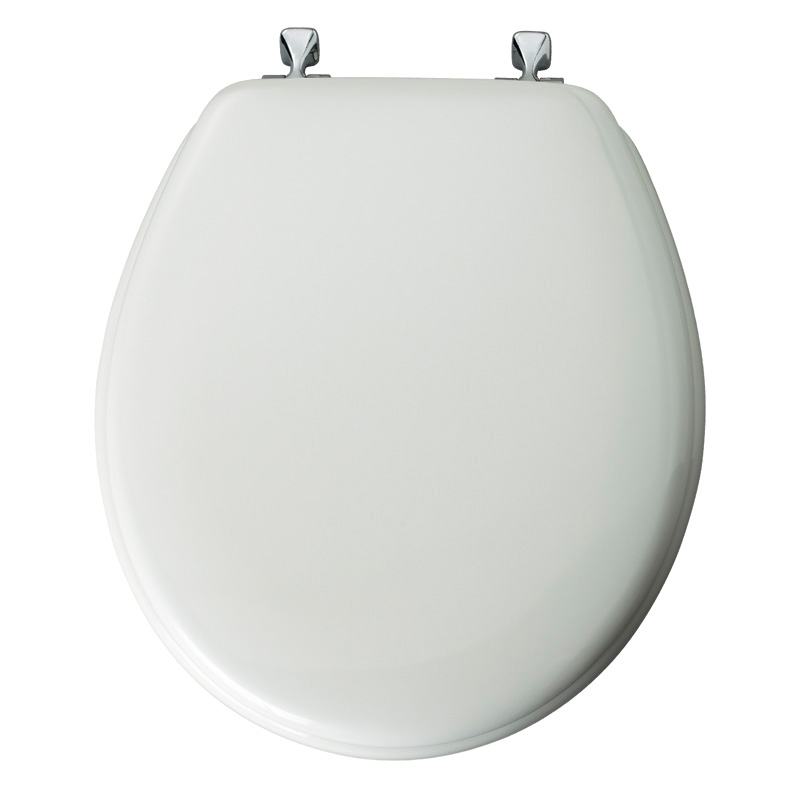 ~Toilet Seat, Round Bowl, Chrome Hinge, Moulded Wood, WHITE, Bemis
