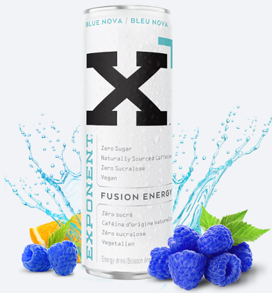 ~Exponent "X" Energy Drink. "BLUE NOVA", Cool Berry w/Citrus, 355ml