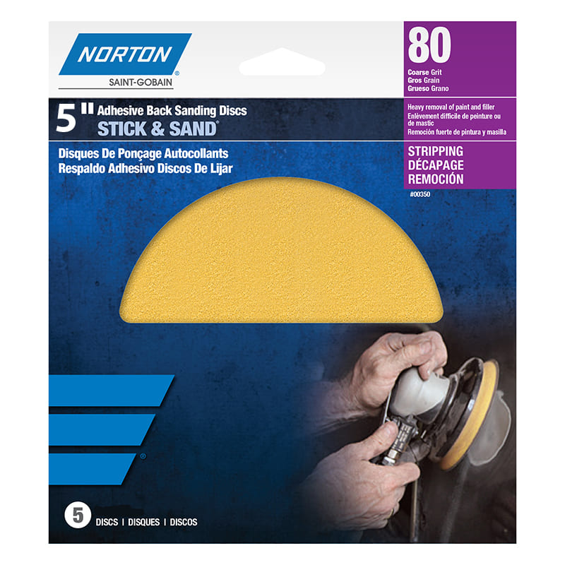 Sanding Disc, Peel & Stick, 5" x 80 grit, 5/pkg, Norton