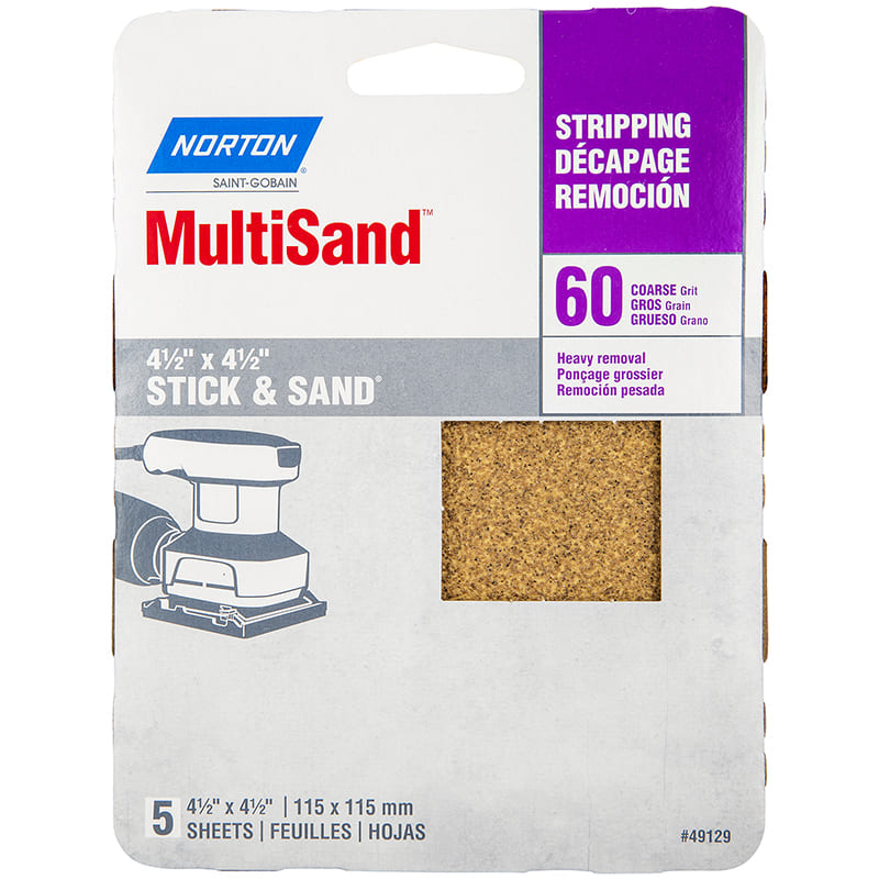 ~Sander Sheet, 4 1/2" X 4 1/2" x 60 Grit, 5/pkg, Norton (05453)