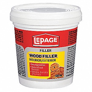 Wood Filler, Interior/Exterior, Latex, Stainable Tan, 500 ml Tub, Lepage