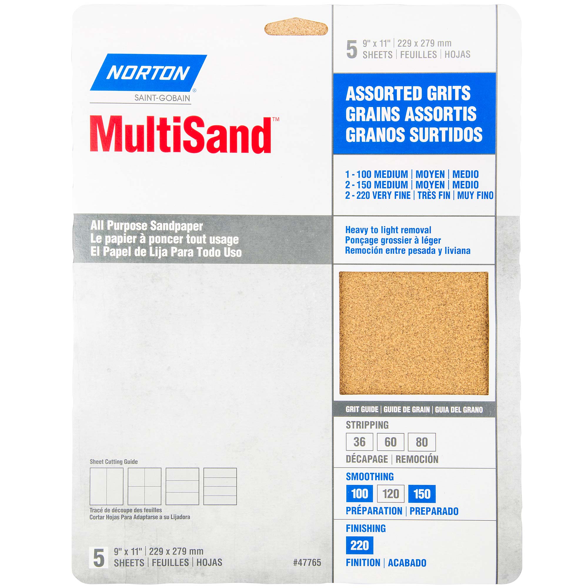 Sandpaper, General Purpose, Assorted Grits, 5/pkg