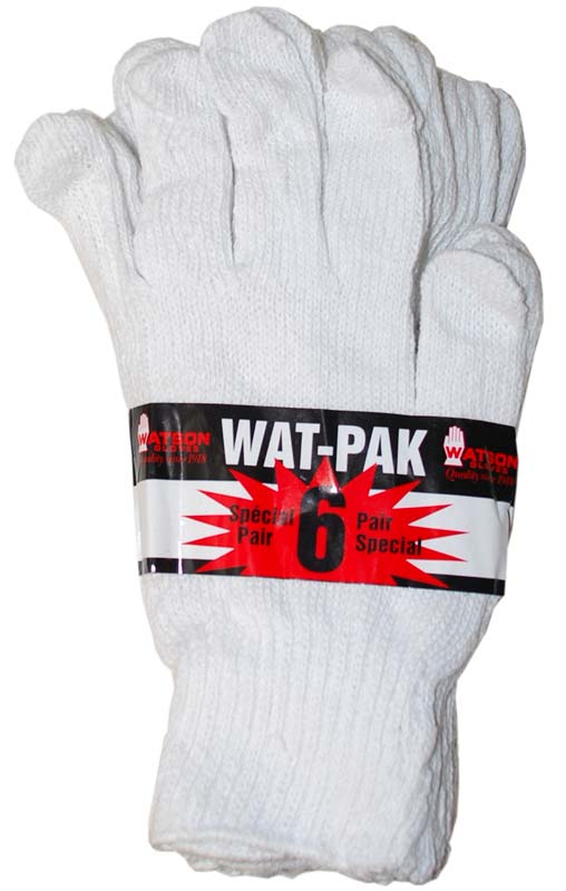 Gloves, Work, White String Knit, One Size, WATSON, 6 pair/pkg