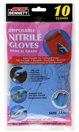Gloves, Disposable, Nitrile, Large, 10/pkg, Bennett