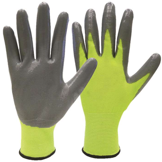 Work Gloves, Nitrile-Coated, Hi-Viz/Grey, 6/pkg