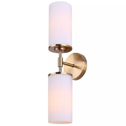 Light Fixture, Wall, GOLD w/White, Ribbed Glass, Canarm KINSLEA