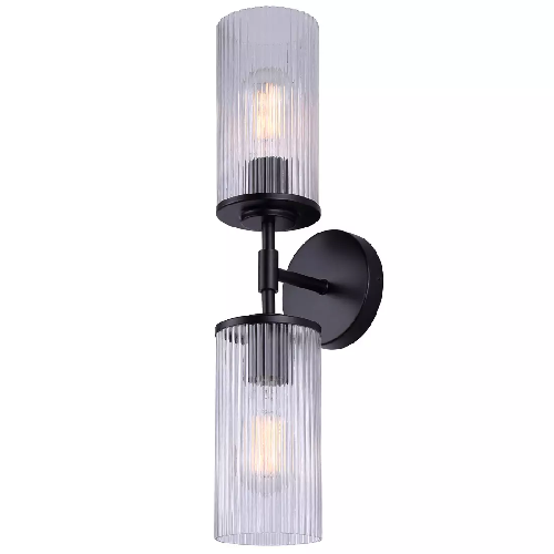 Light Fixture, Wall, BLACK w/Ribbed Glass, Canarm KINSLEA