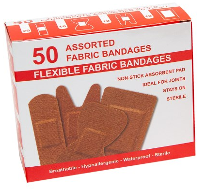Adhesive Bandages, Fabric, Assorted, 50/pkg