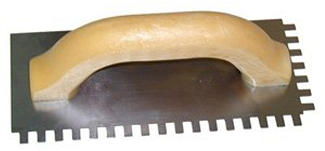 Tile Trowel, Square Notch, 1/4" x 1/4" x 1/4", Plastic Handle, 9" x 4" overall